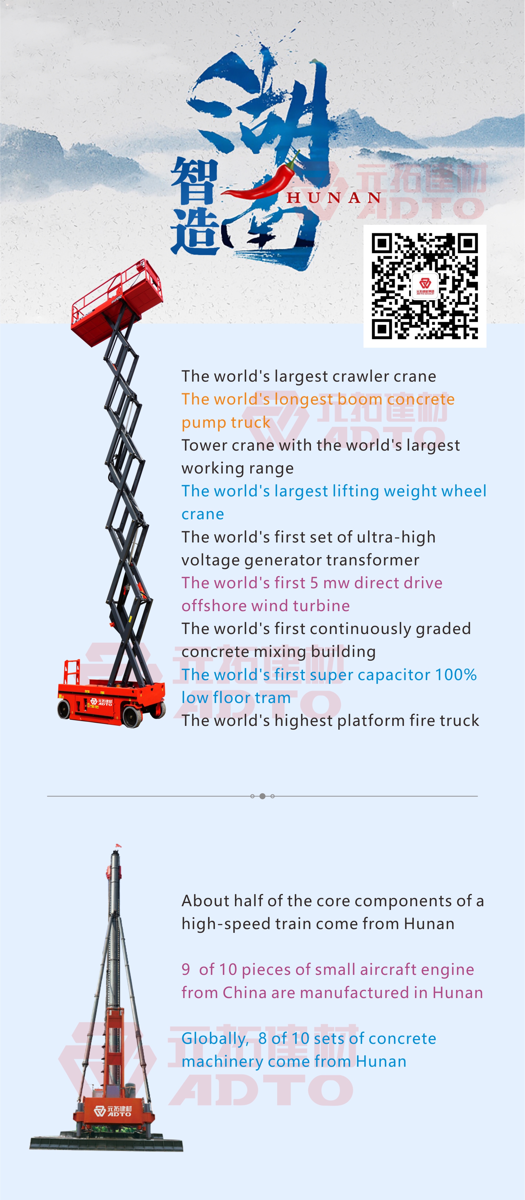 Hunan is a rising star with great potential, so as the enterprises in this place. The construction machinery industry is one of the most competitive pillar industries in Changsha---the capital of Hunan Province. There are over 30 large-scale construction machinery manufacturers and more than 200 accessory supply companies, among which Sany, Zoomlion, China Railway Construction Heavy Industry (CRCHI), ADTO, Sunward being typically known by the world. Seventy percent types of construction machinery products can be found in Changsha. Its products have covered over 160 countries and regions, quickly forming a world-class construction machinery industry cluster.